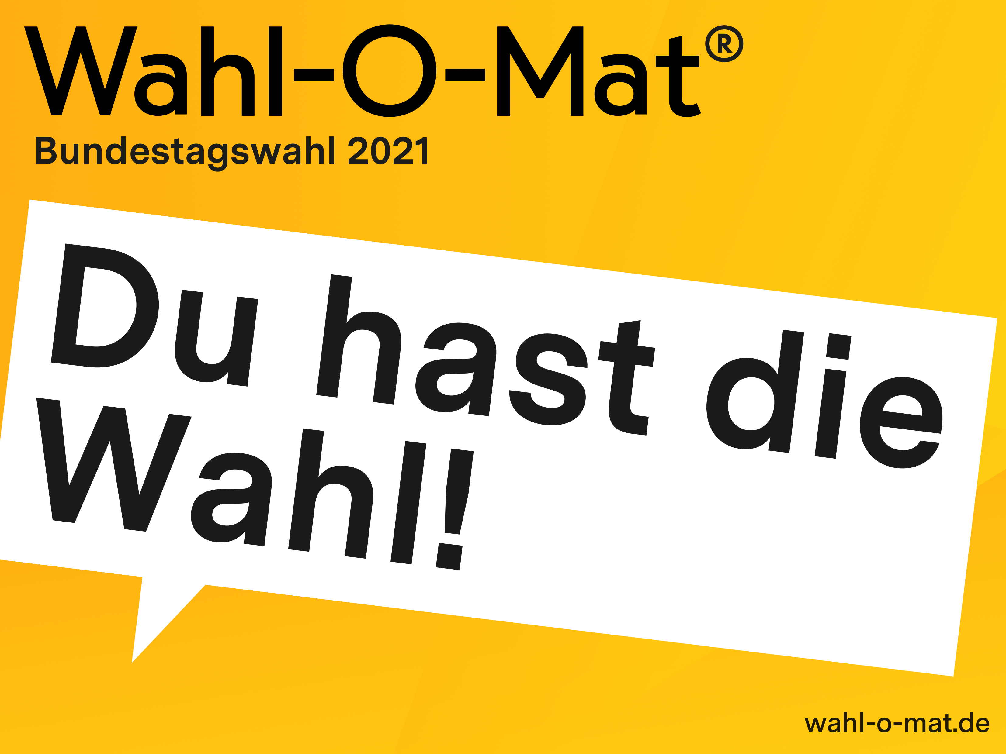 Am 26.09.2021 haben Sie die Wahl. Der von der Bundeszentrale für politische Bildung erstellte Wahl-o-Mat basiert auf den Aussagen in den Wahlprogrammen der einzelnen Parteien und ist damit eine gute Entscheidungshilfe.