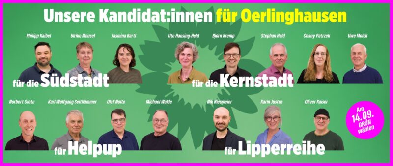Am 14. September ist Kommunalwahl in NRW. Wir GRÜNE Oerlinghausen haben viele Ideen: mehr Klimaschutz, soziale Gerechtigkeit, gute Fuß- und Radwege, sowie eine starke Demokratie.