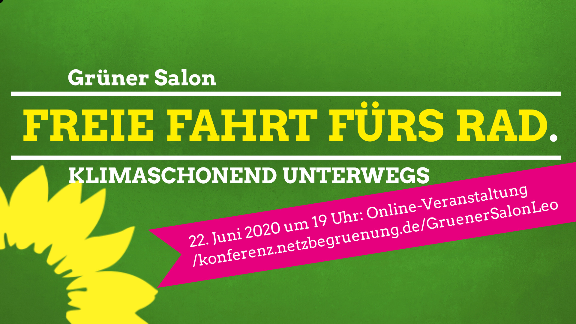 Wir setzen die Veranstaltungsreihe „Klimaschonend unterwegs“ im Grünen Salon zum Klimaschutz im Verkehr mit dem Thema „Freie Fahrt fürs Rad“ als Online-Veranstaltung fort.: Montag, 22. Juni 2020, um 19 Uhr im Internet unter //konferenz.netzbegruenung.de/GruenerSalonLeo. Technische Hinweise dazu finden Sie hier.