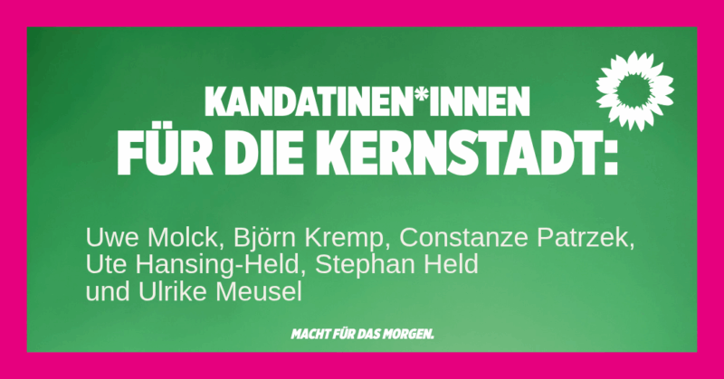 Ich kämpfe für ein Oerlinghausen, dass mit seinen Stadtwerken seine Bürger:innen klimaneutral mit Elektrizität und Wärme versorgt, damit meine Enkel und Urenkel ein Oerlinghausen vorfinden, dessen Natur intakt ist und das lebens- und liebenswert ist.